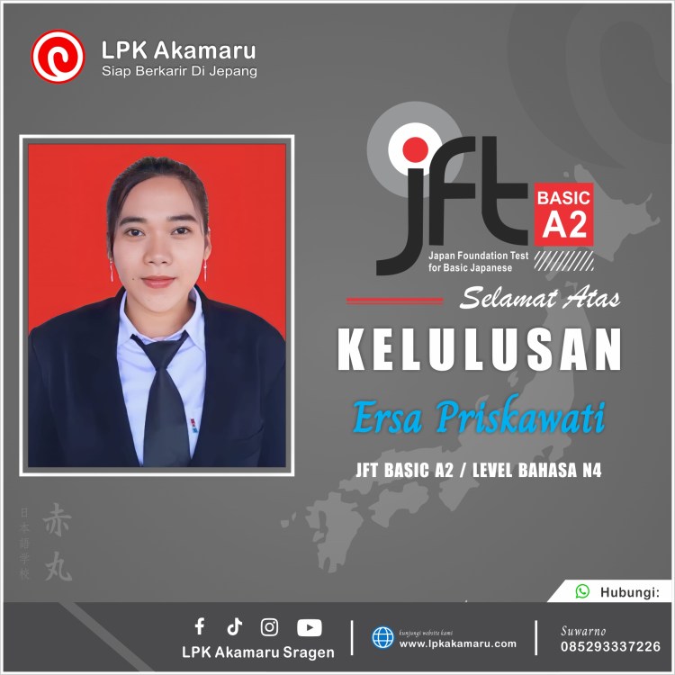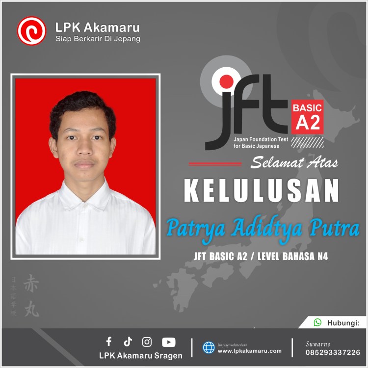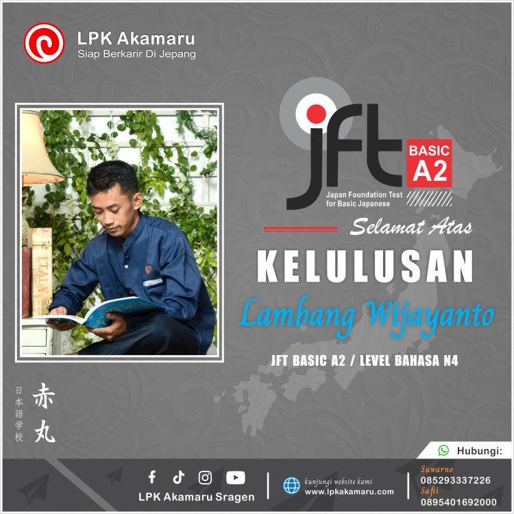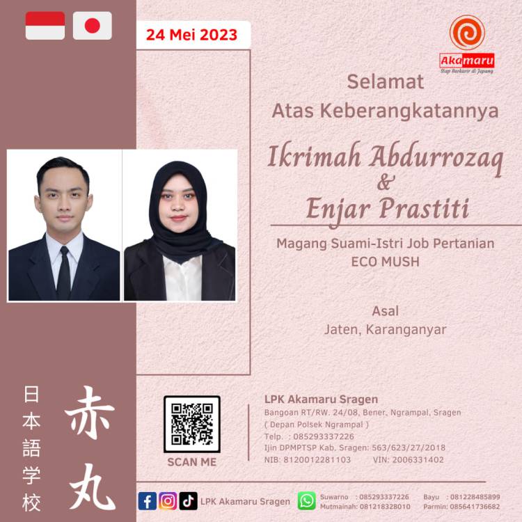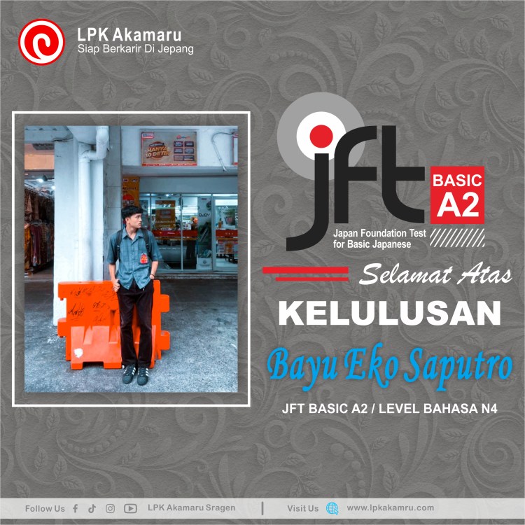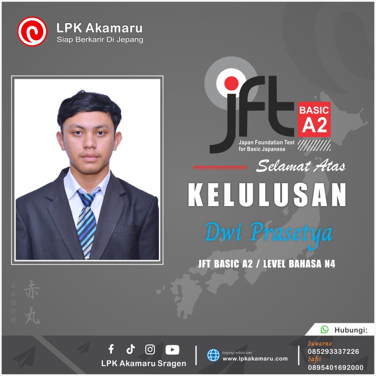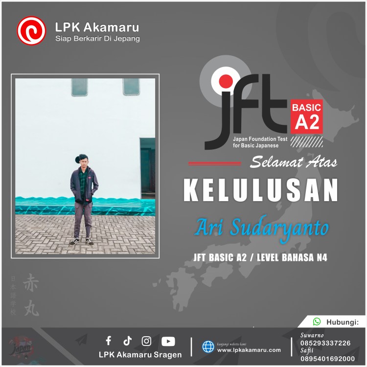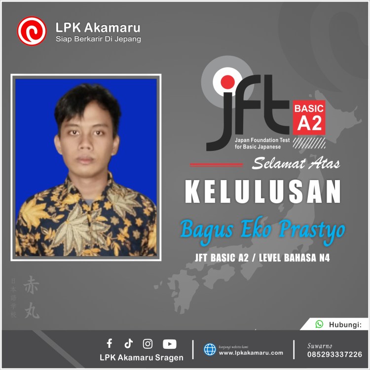 Lembaga Pendidikan Bahasa Jepang Akamaru, didirikan pada Bulan Januari Tahun 2016 oleh Suwarno dan Bayu Rohmanto S,Pd. Selengkapnya