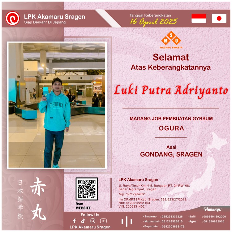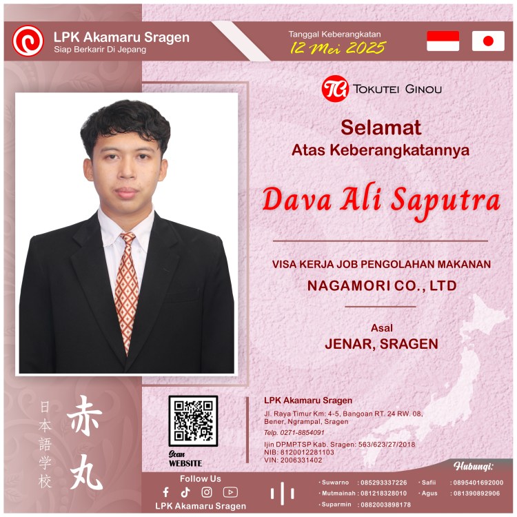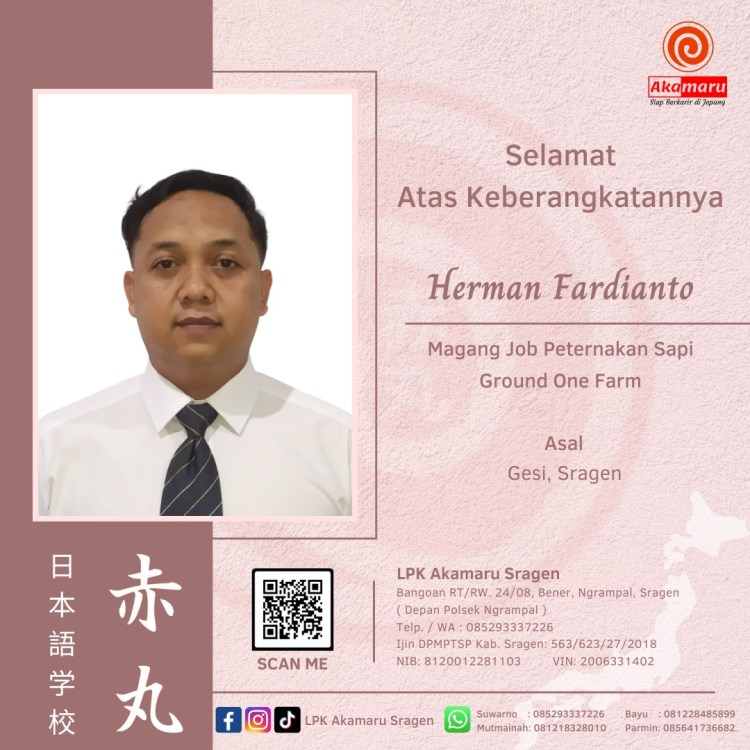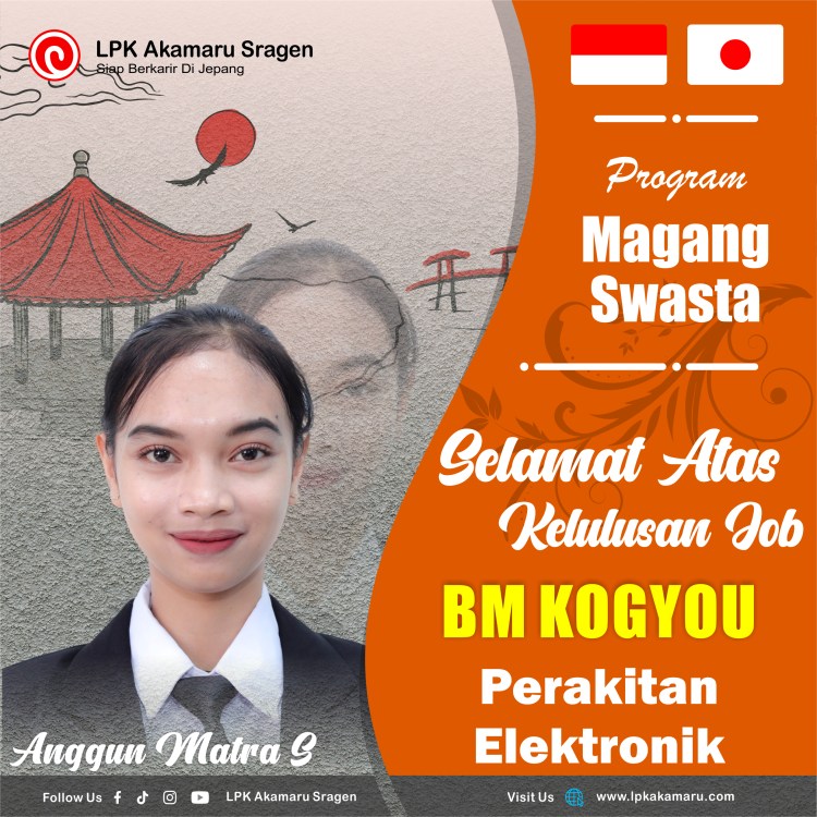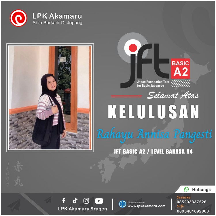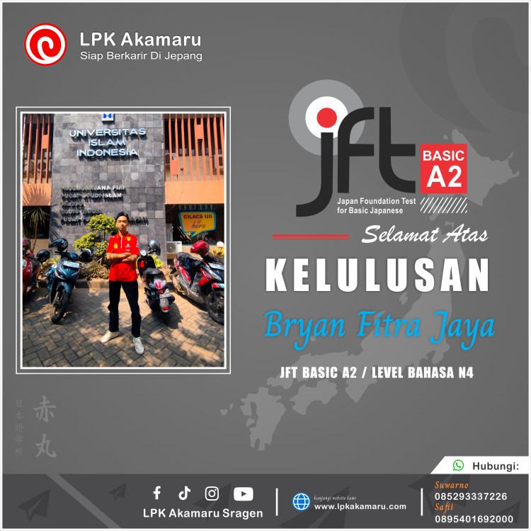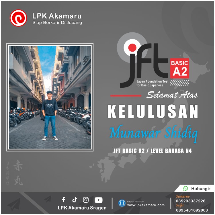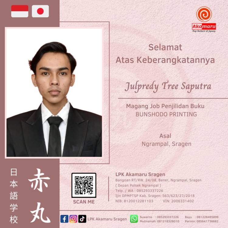 Lembaga Pendidikan Bahasa Jepang Akamaru, didirikan pada Bulan Januari Tahun 2016 oleh Suwarno dan Bayu Rohmanto S,Pd. Selengkapnya
