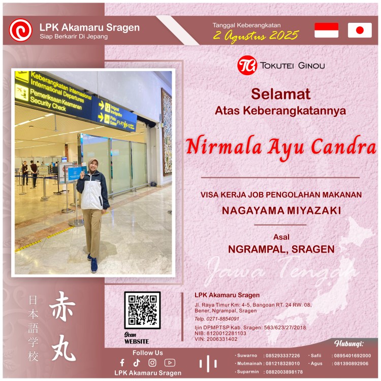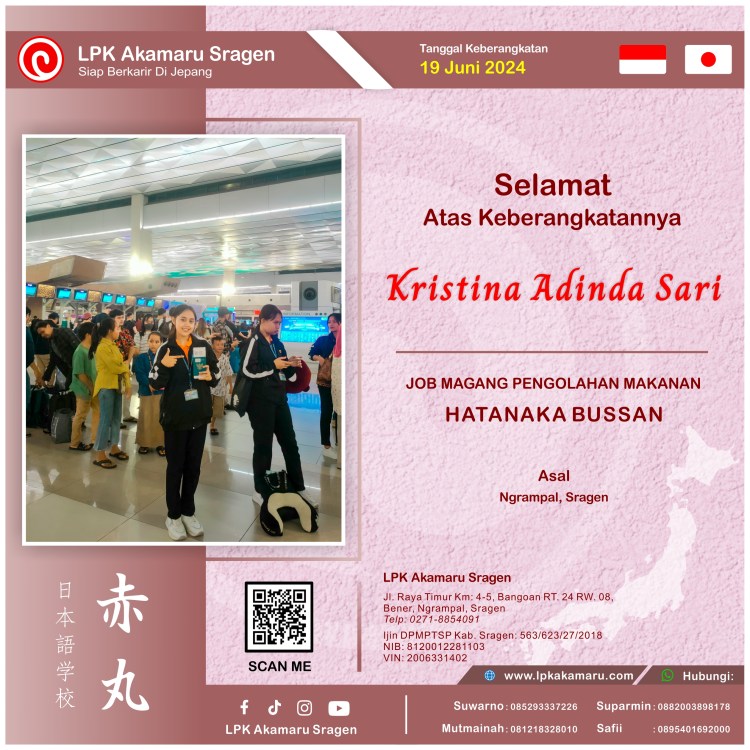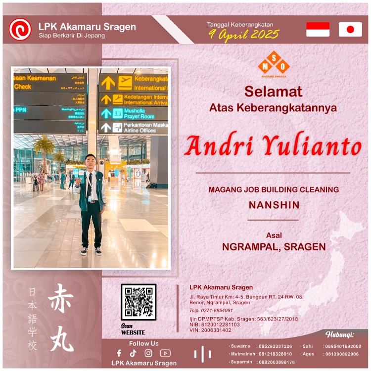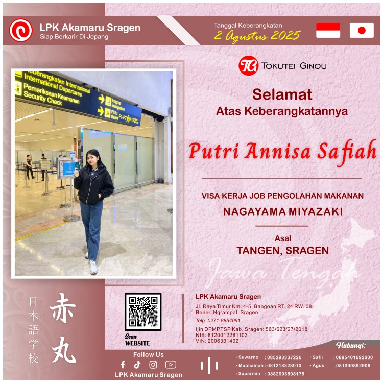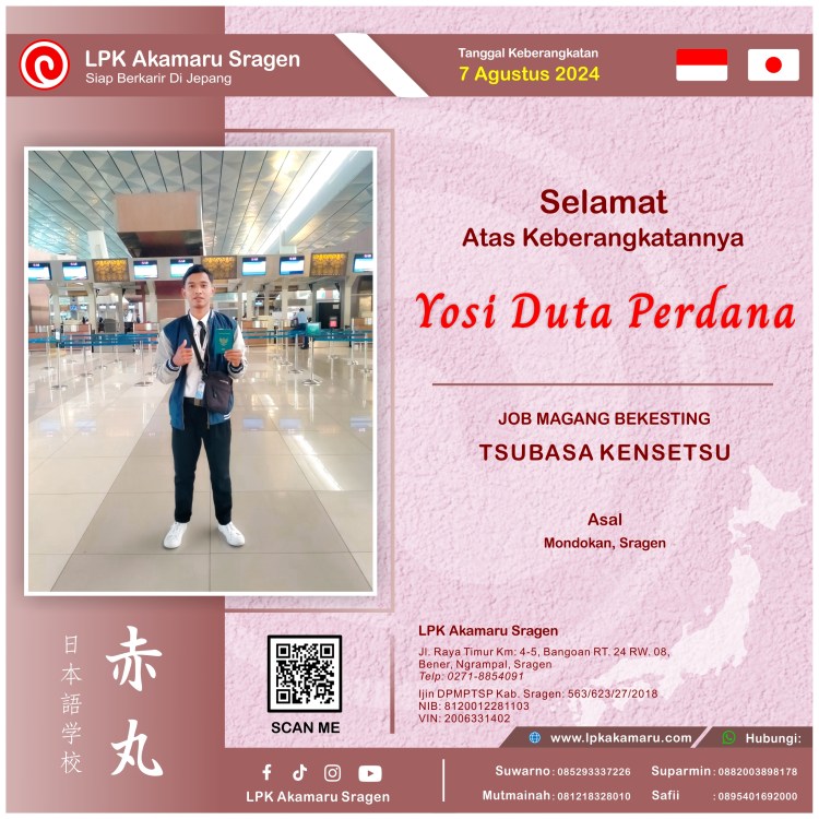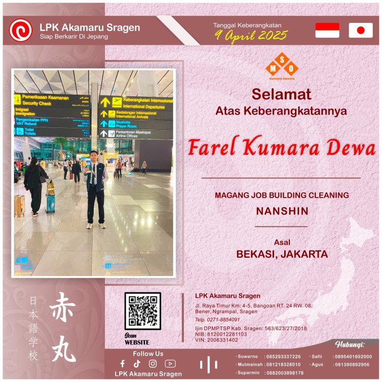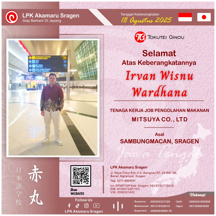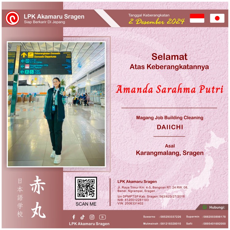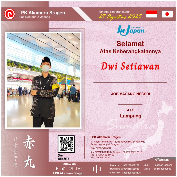 - Mendampingi serta memantau proses dari awal sampai berangkat ke Jepang.