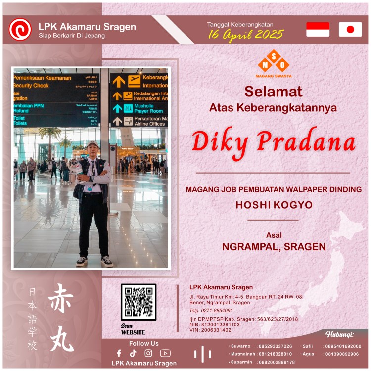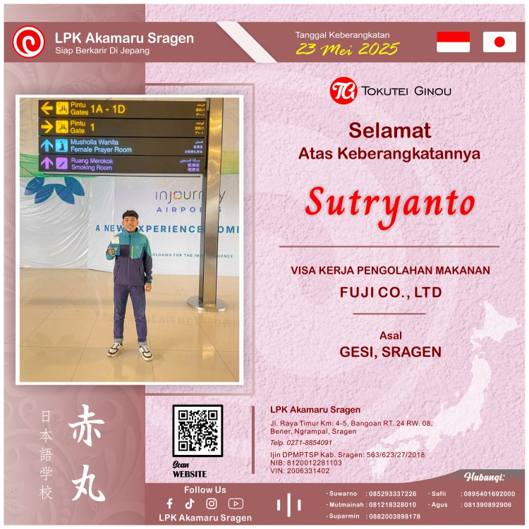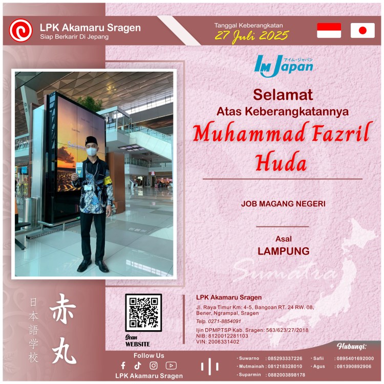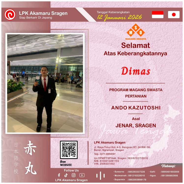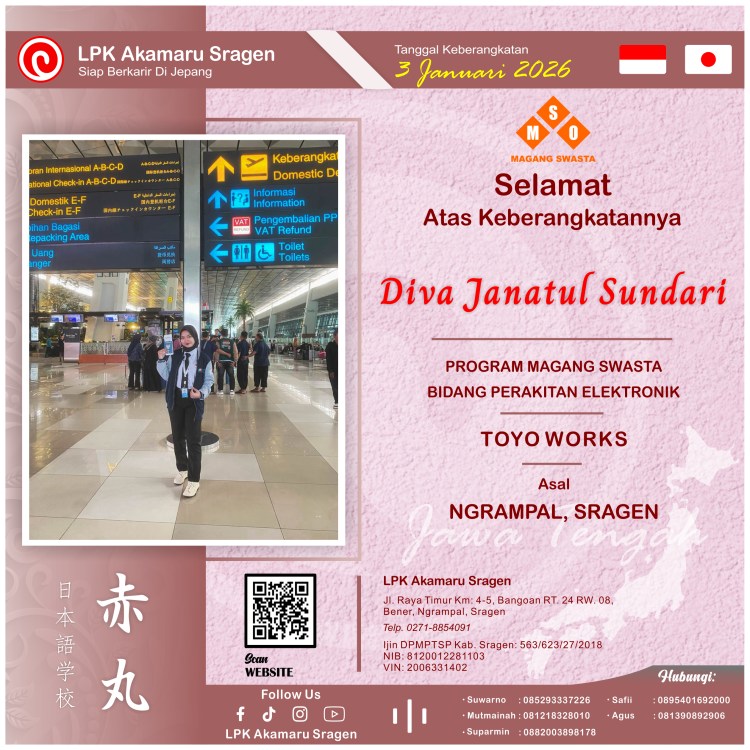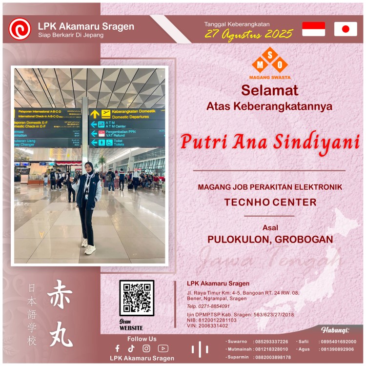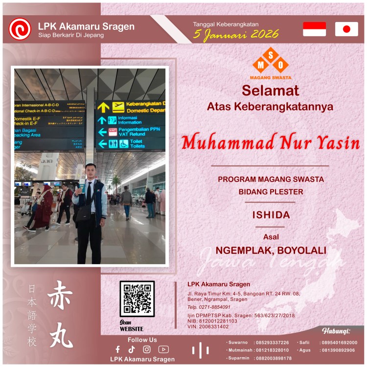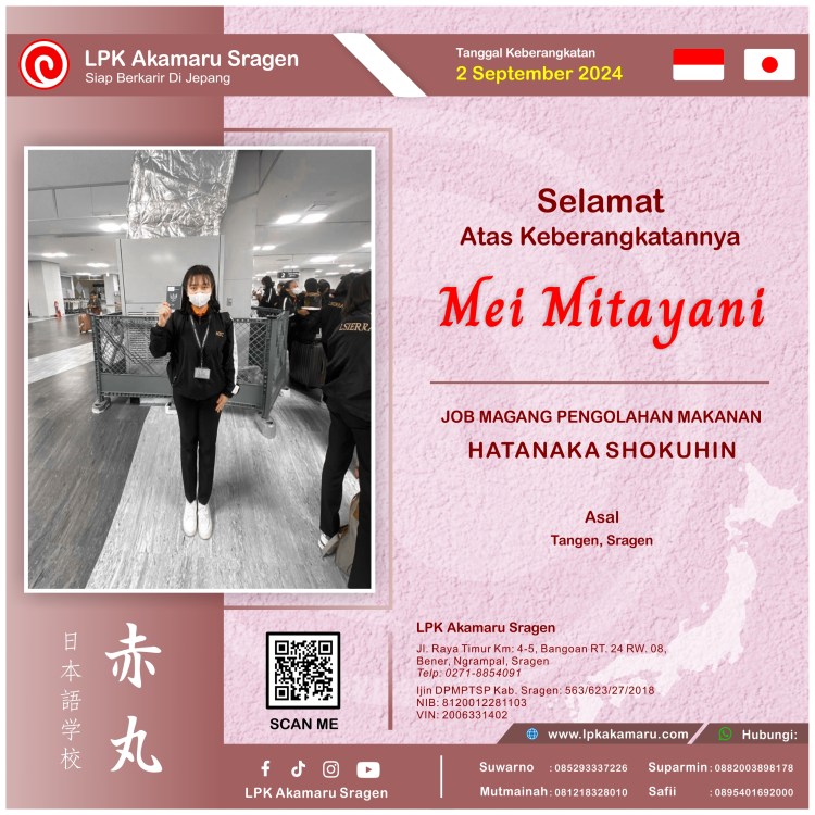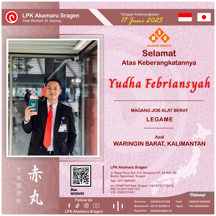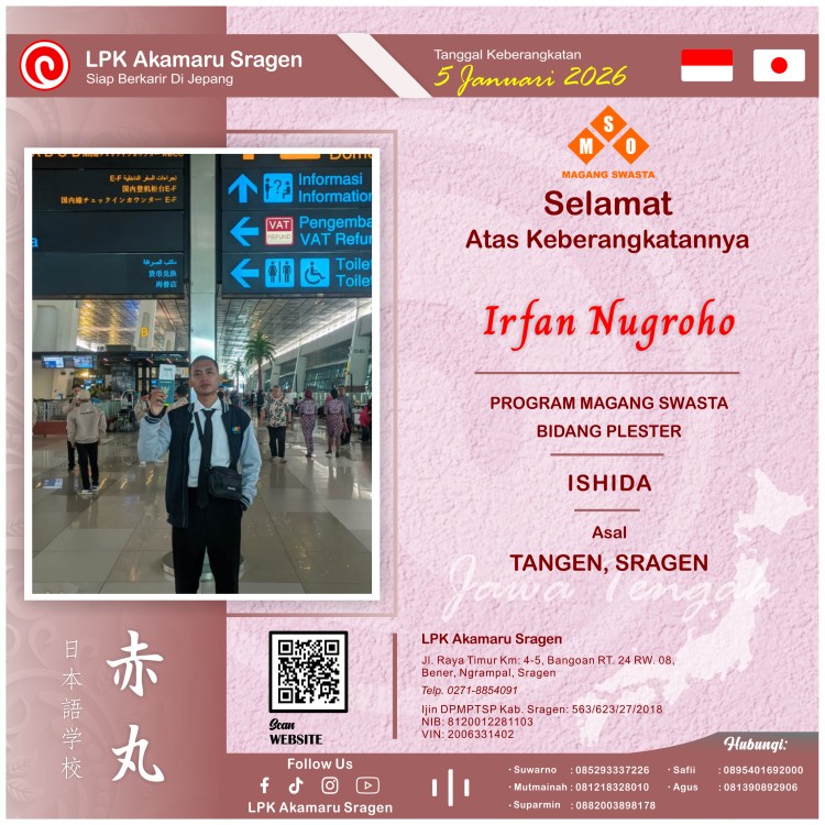 - Mendampingi serta memantau proses dari awal sampai berangkat ke Jepang.