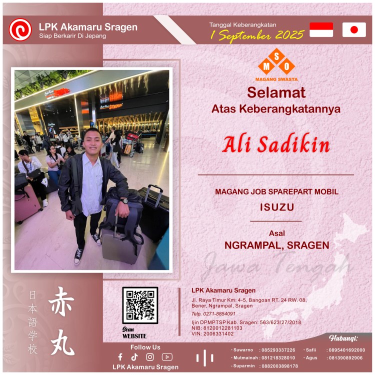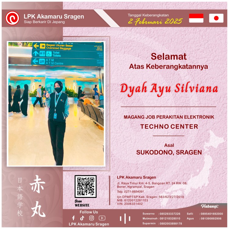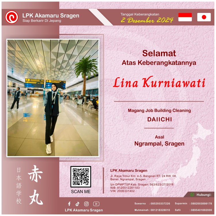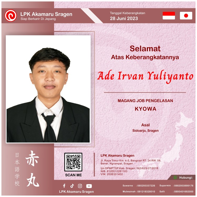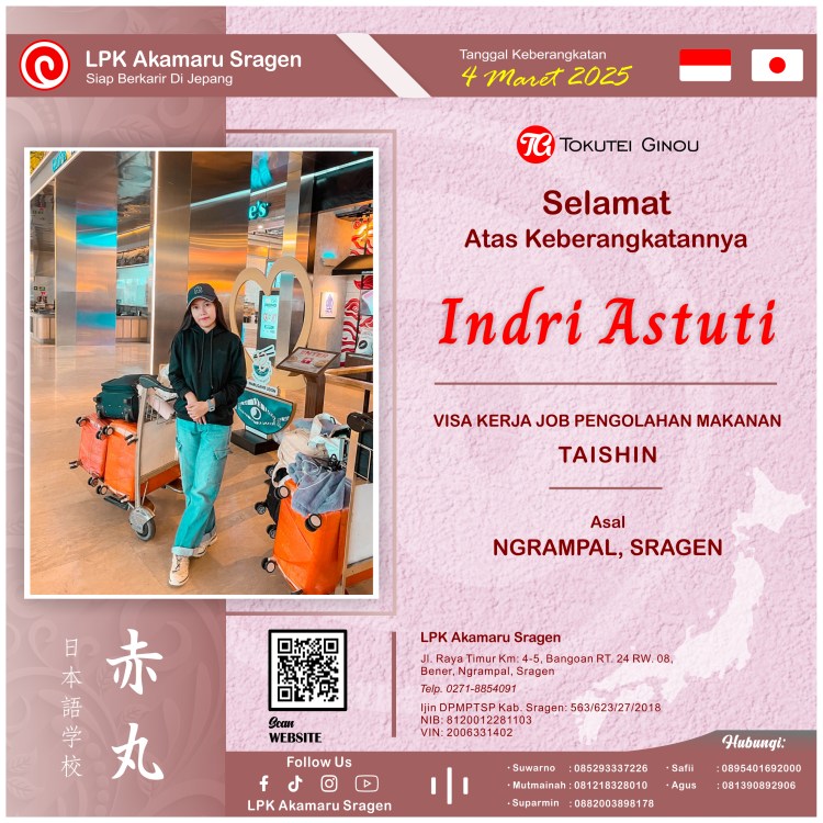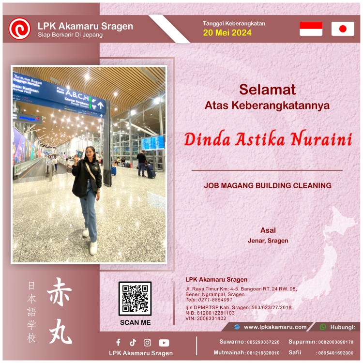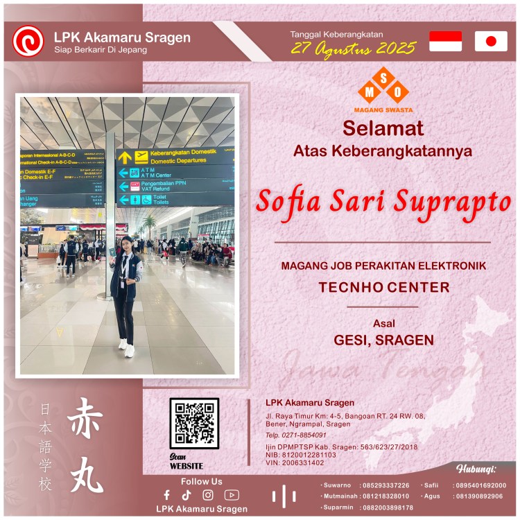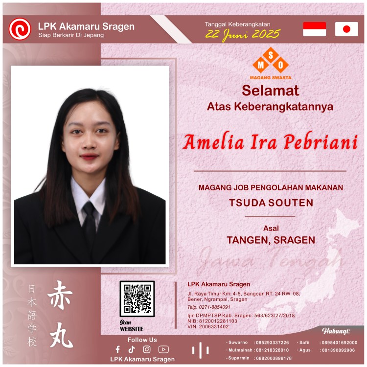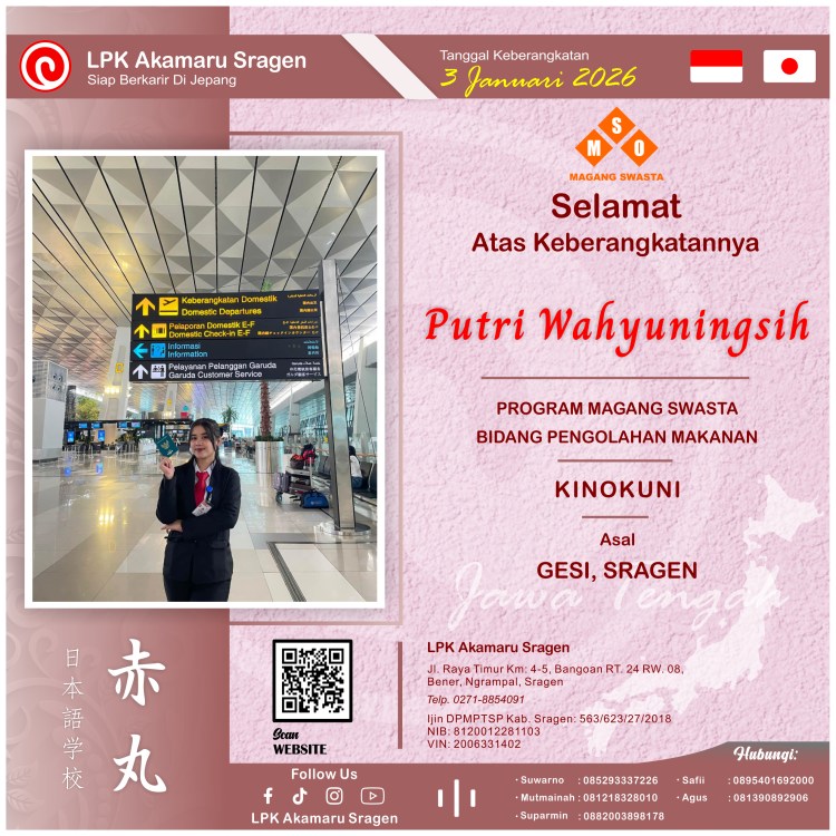 - Mendampingi serta memantau proses dari awal sampai berangkat ke Jepang.