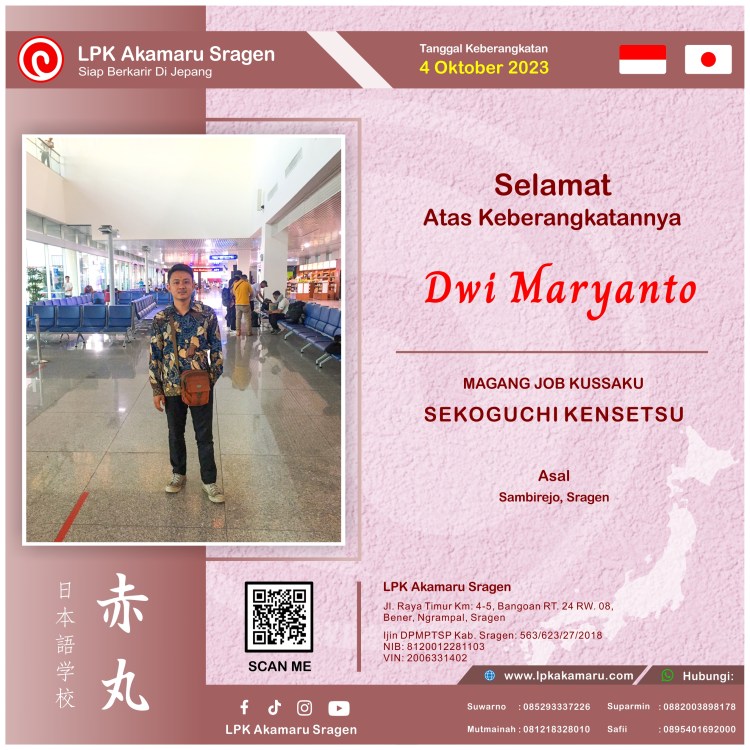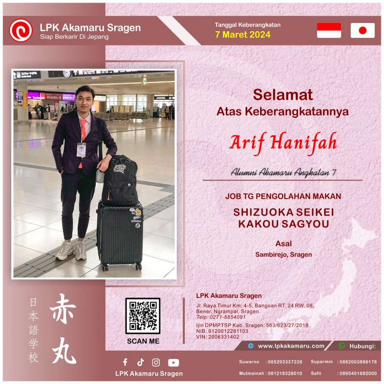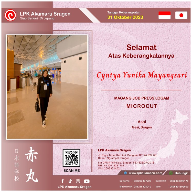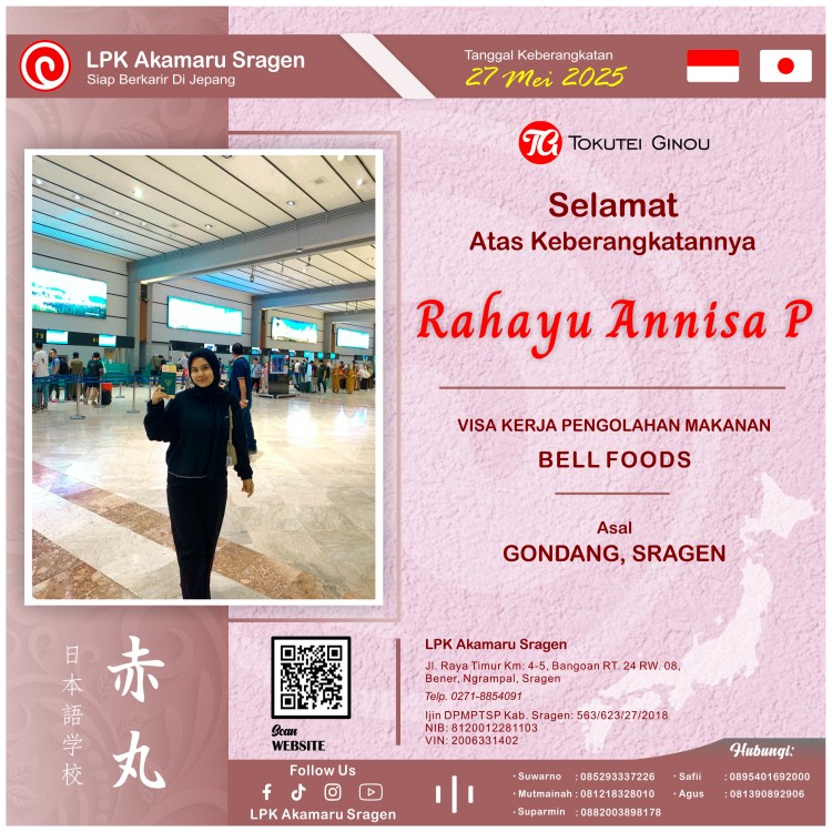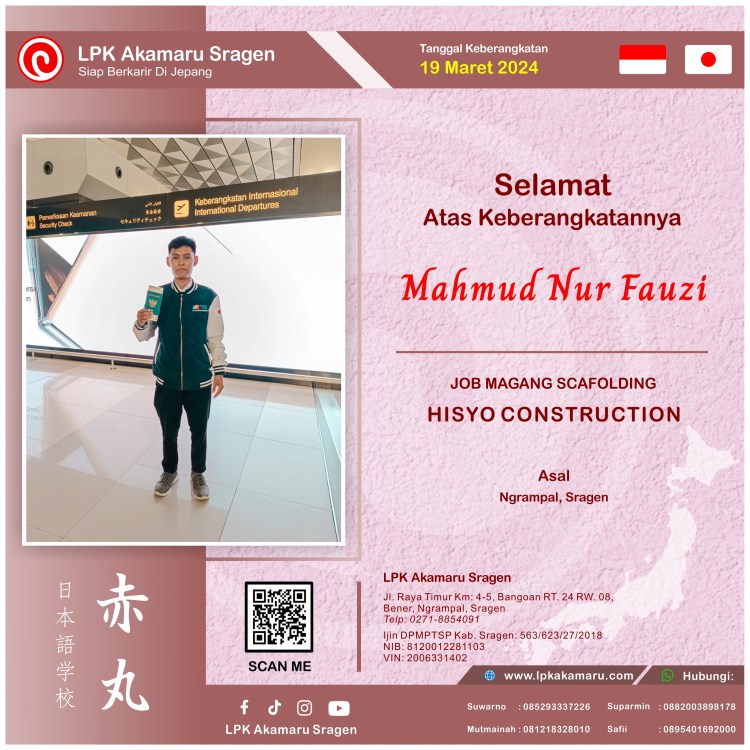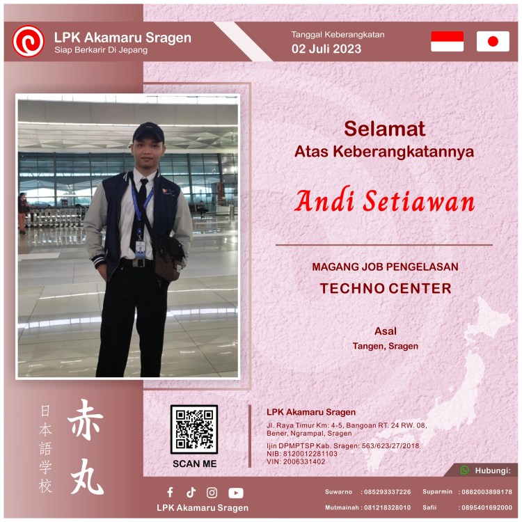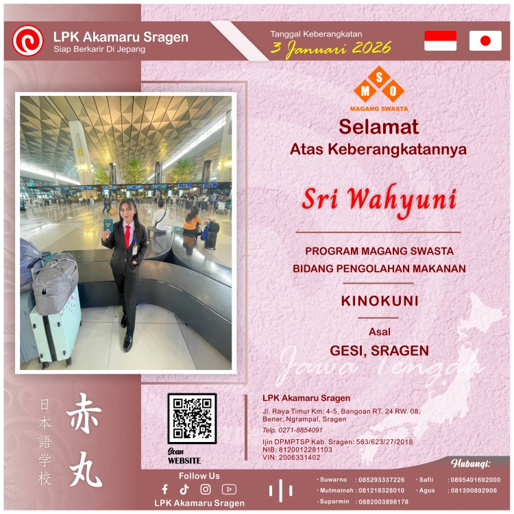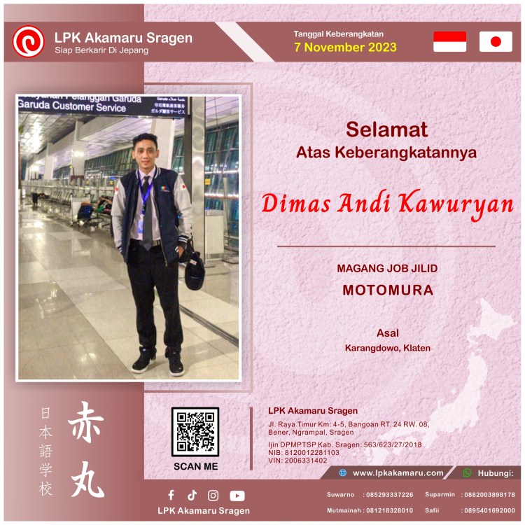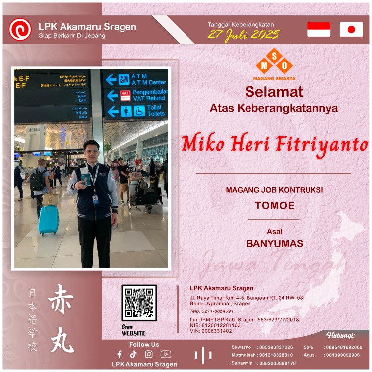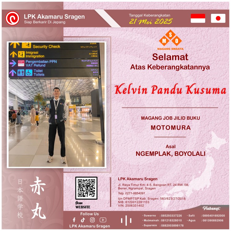 - Mendampingi serta memantau proses dari awal sampai berangkat ke Jepang.