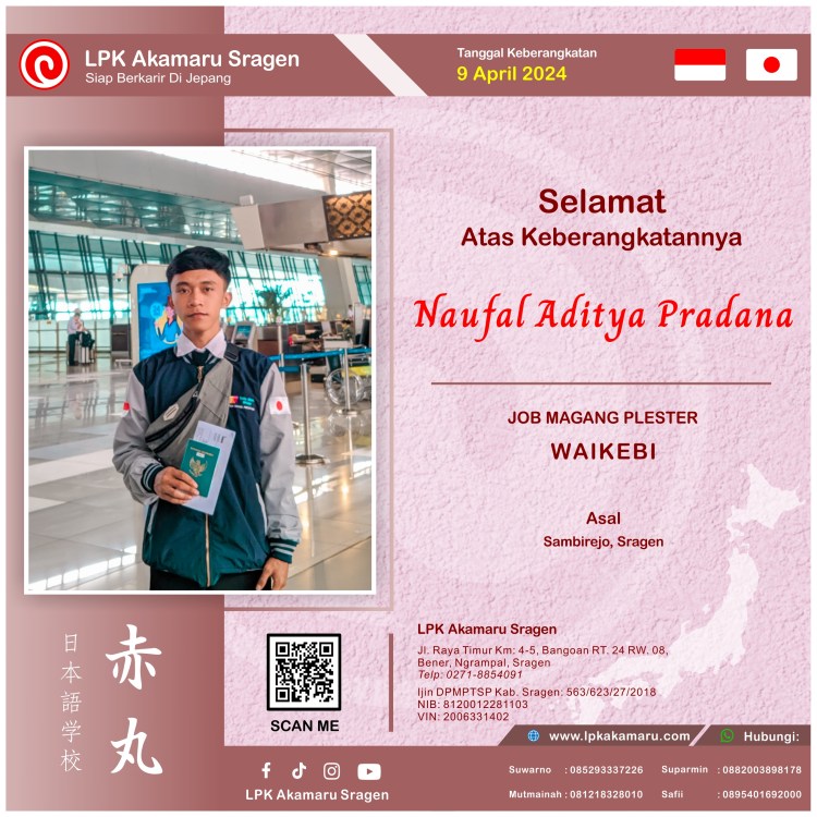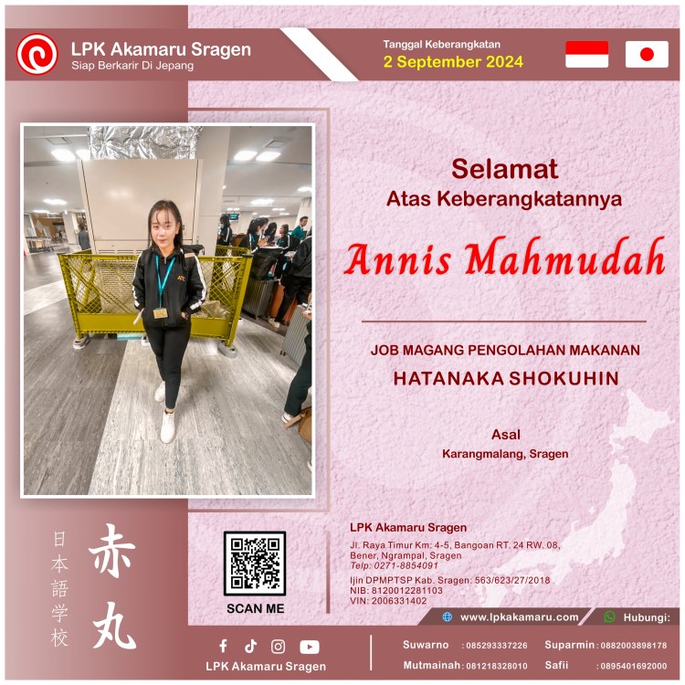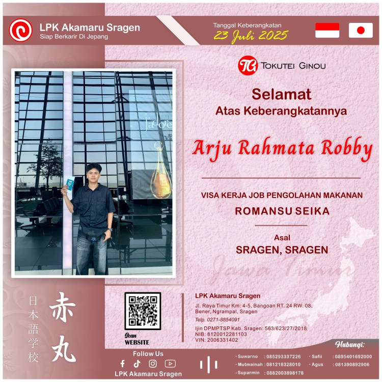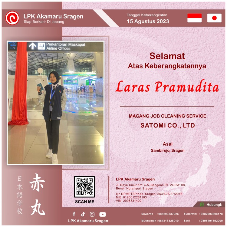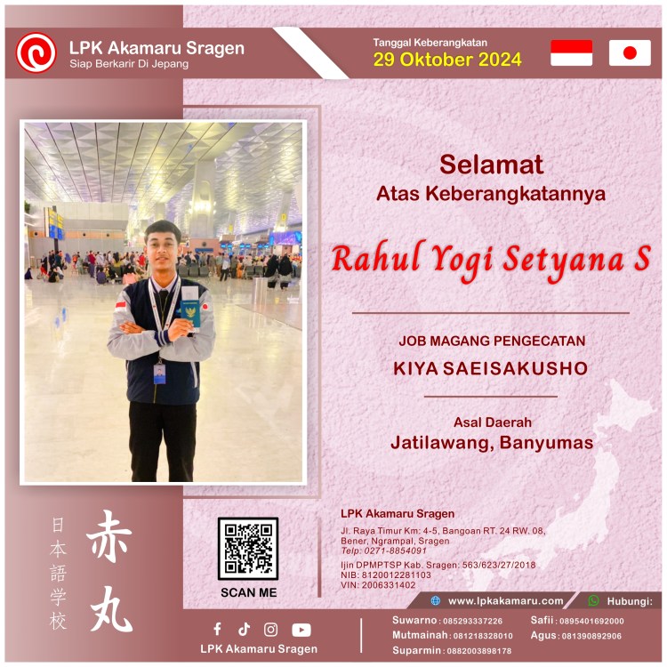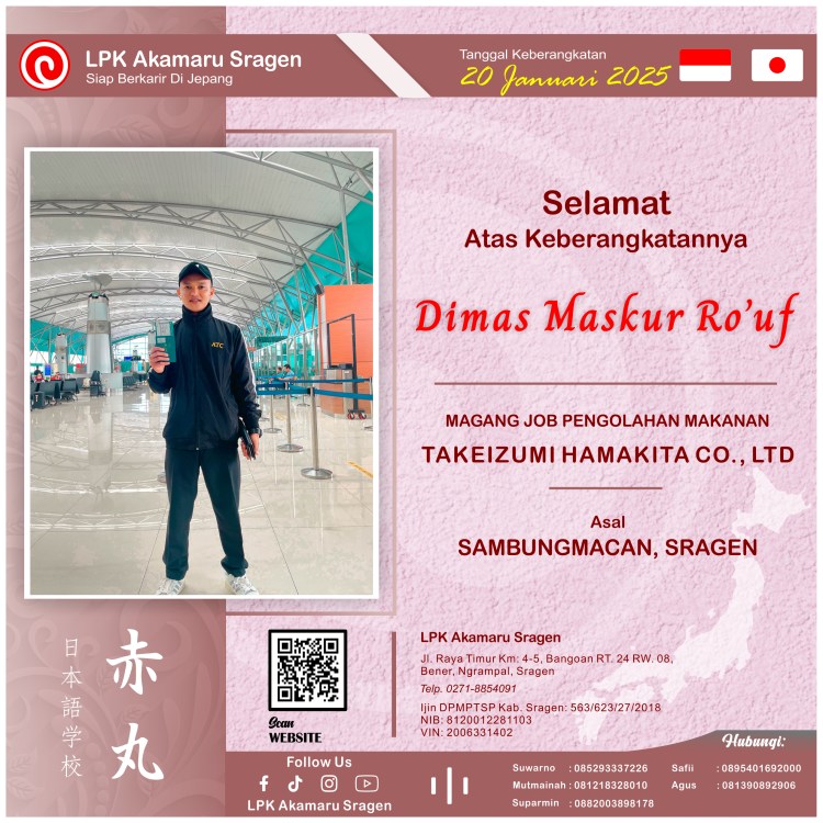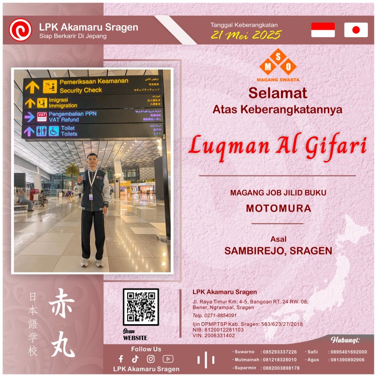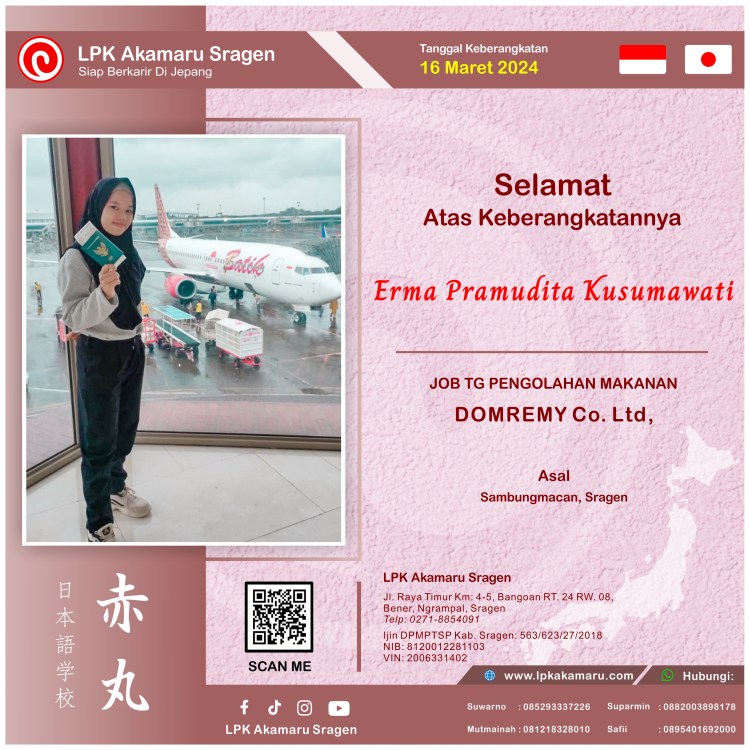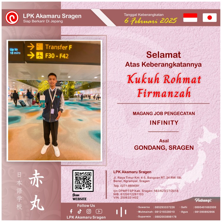 - Mendampingi serta memantau proses dari awal sampai berangkat ke Jepang.
