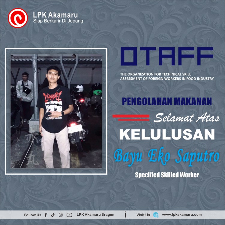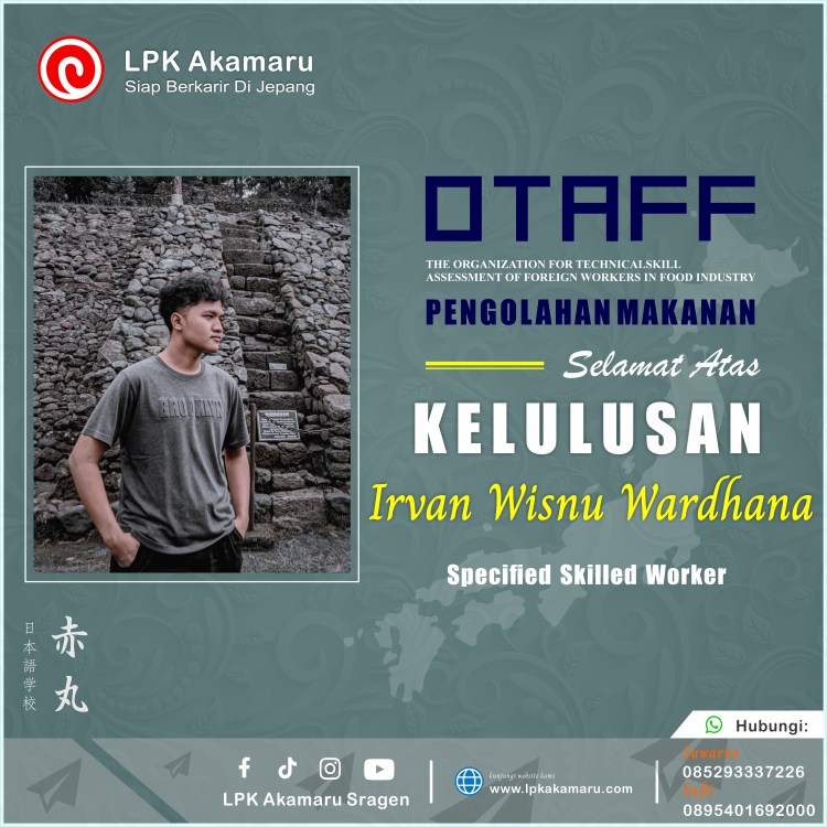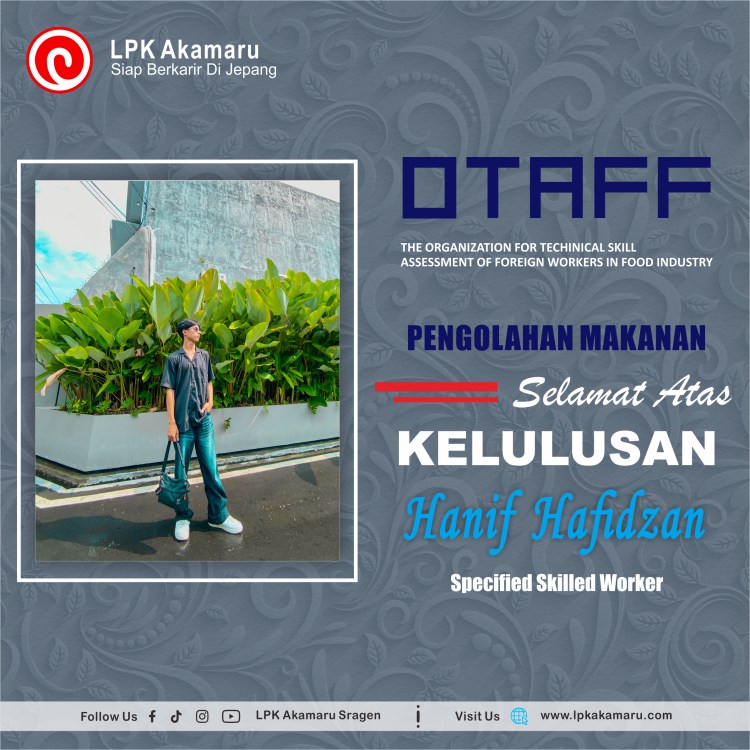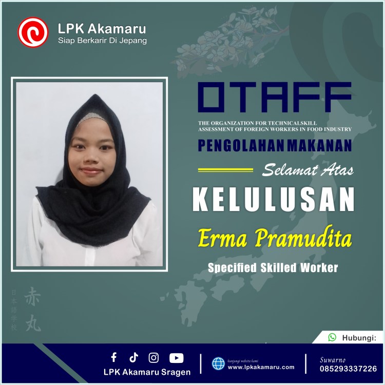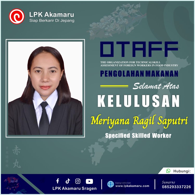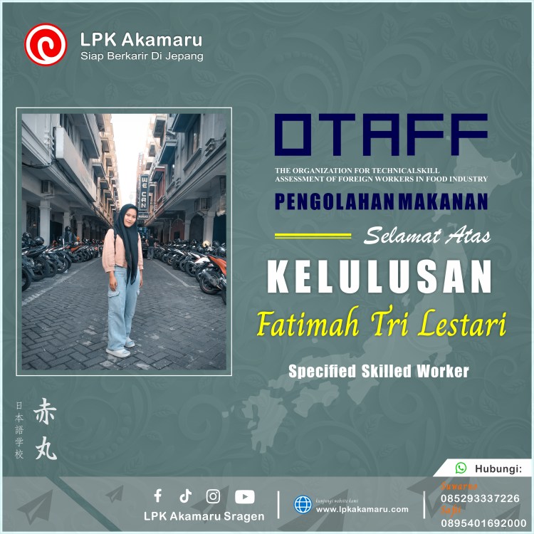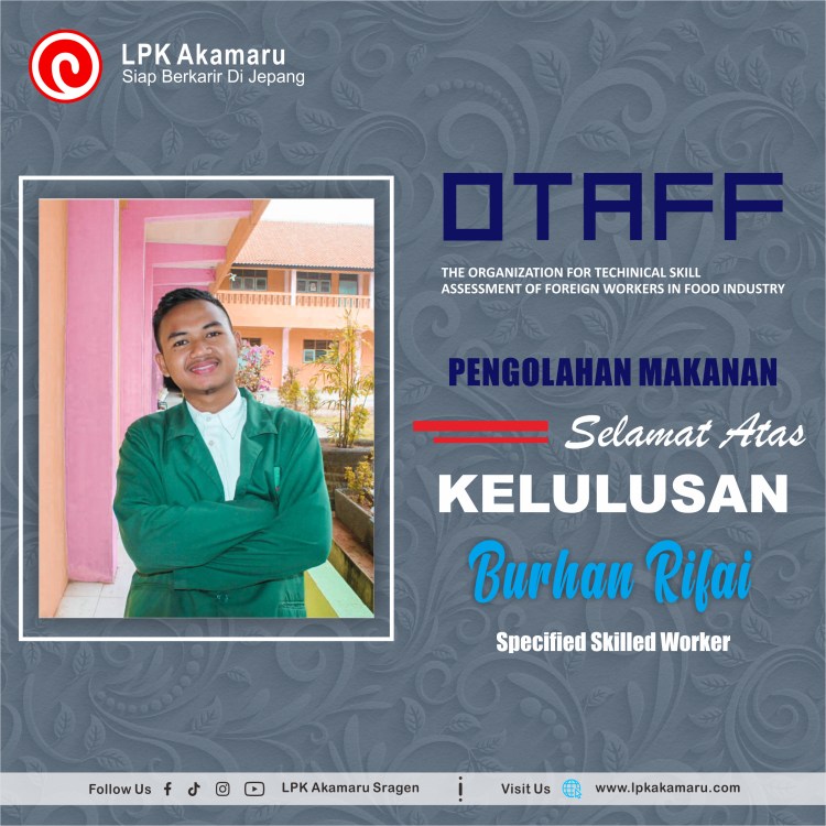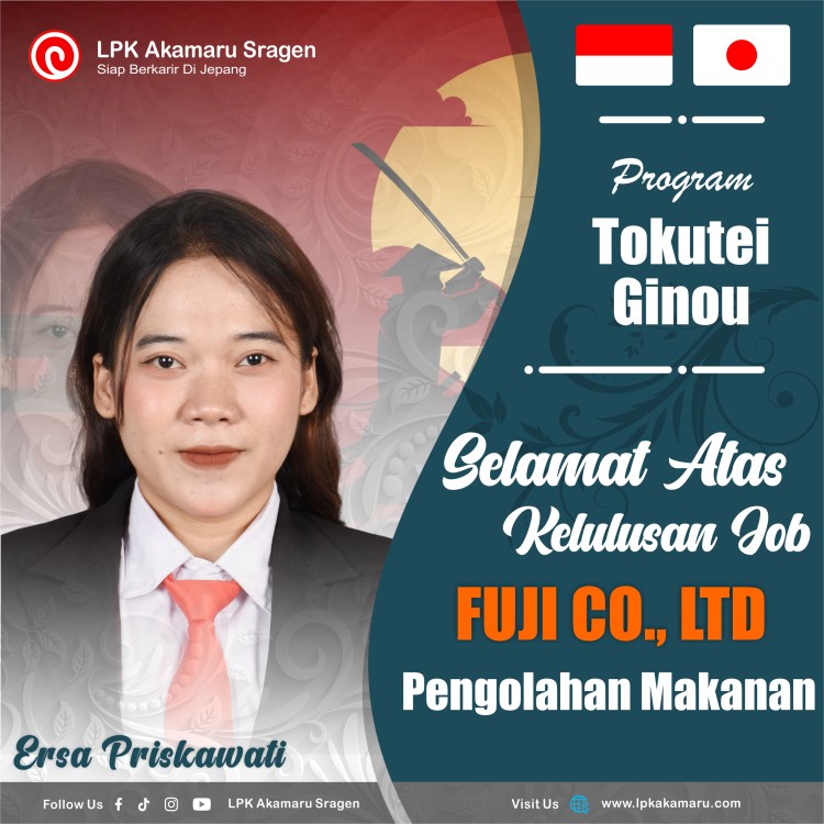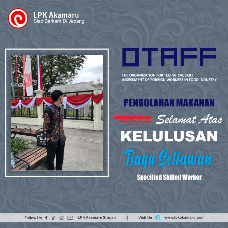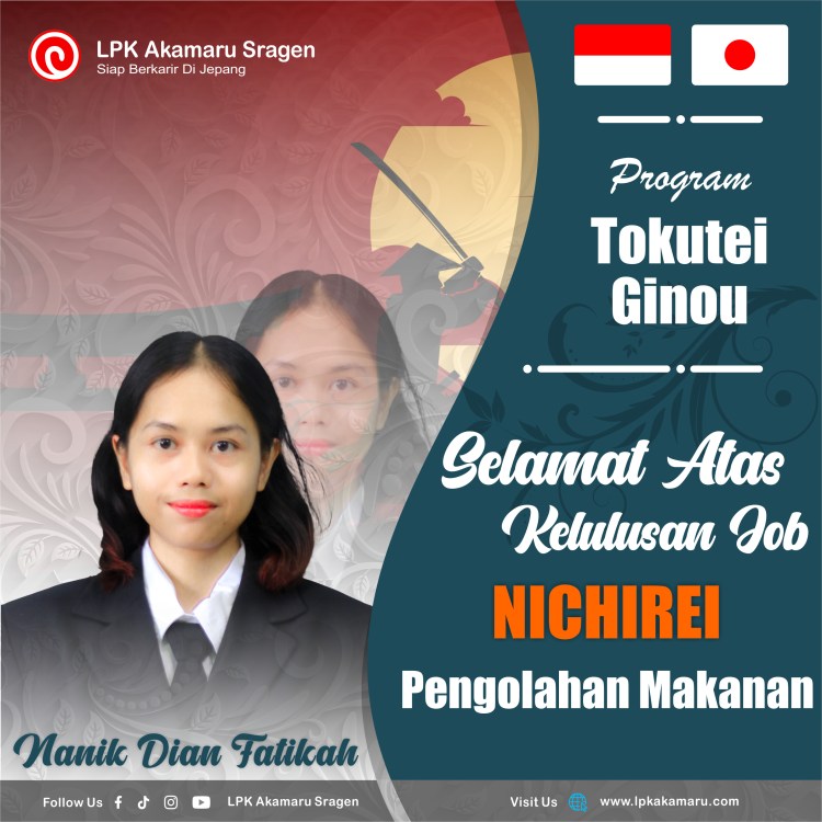 - Melatih kedisiplinan dan etos kerja sesuai standard di Jepang.