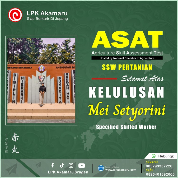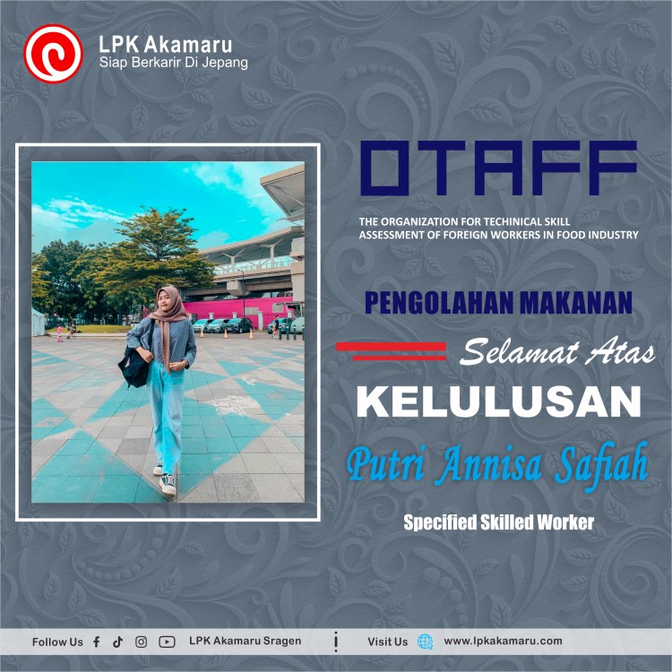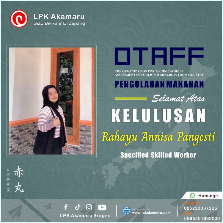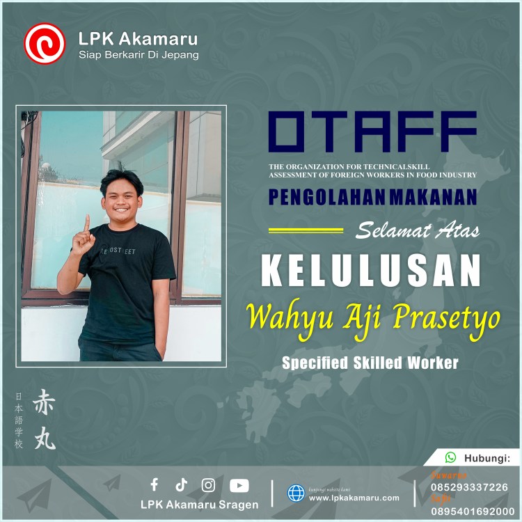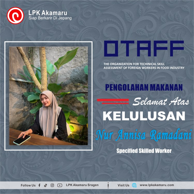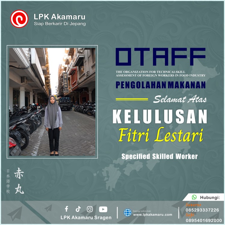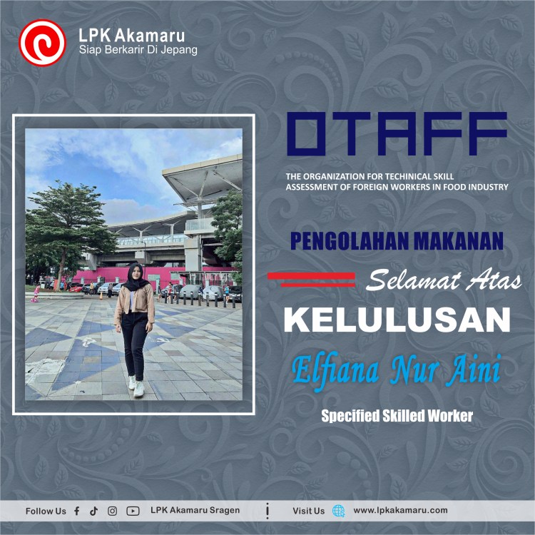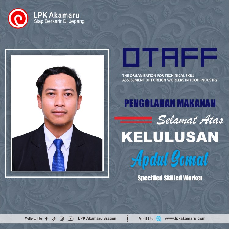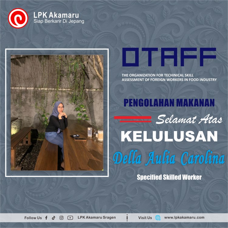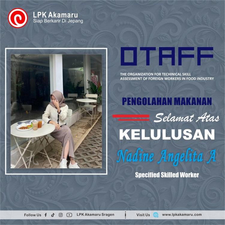 - Melatih kedisiplinan dan etos kerja sesuai standard di Jepang.