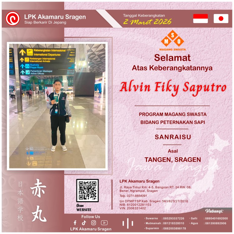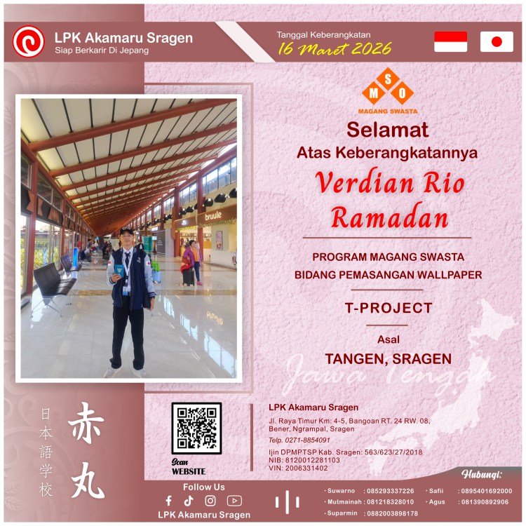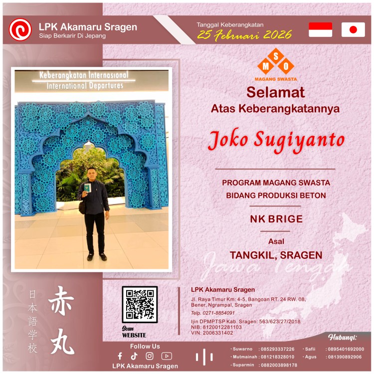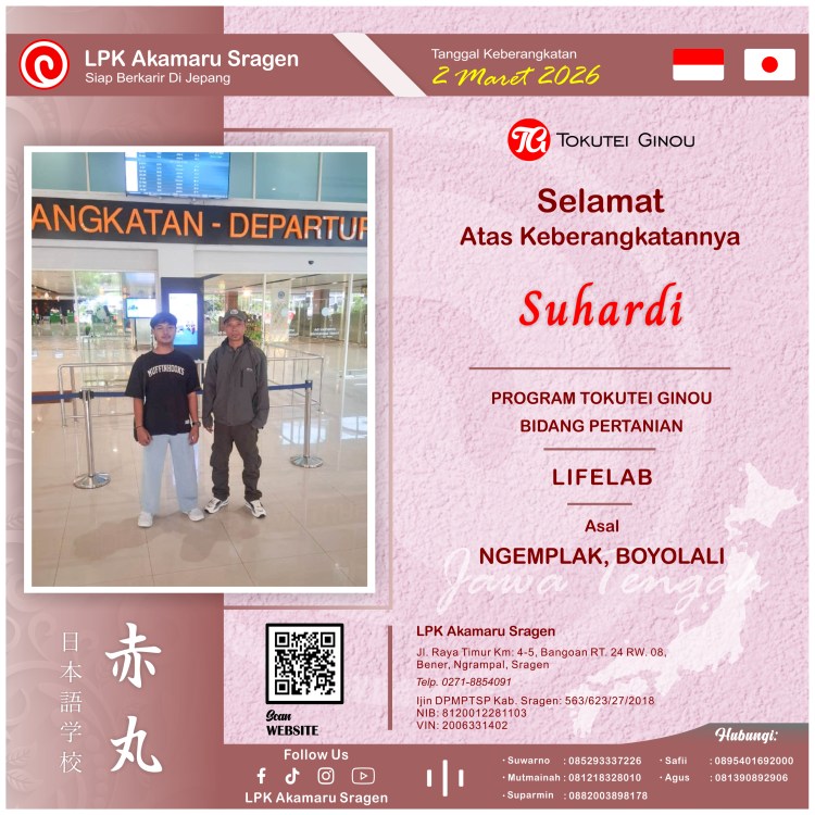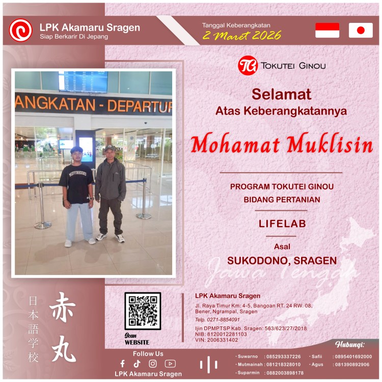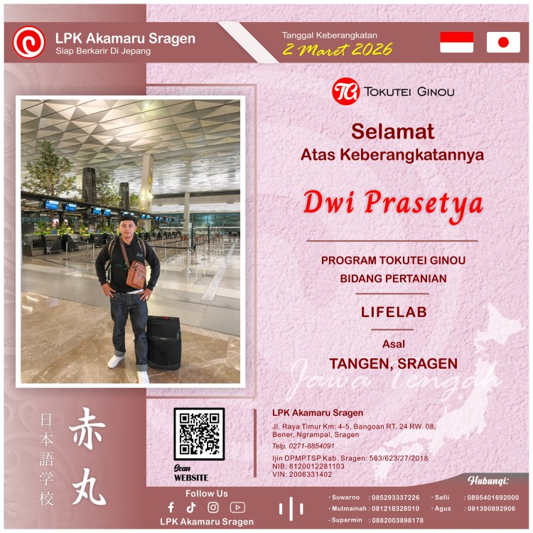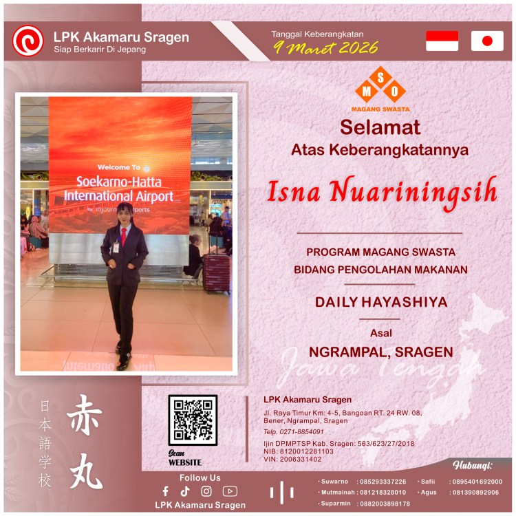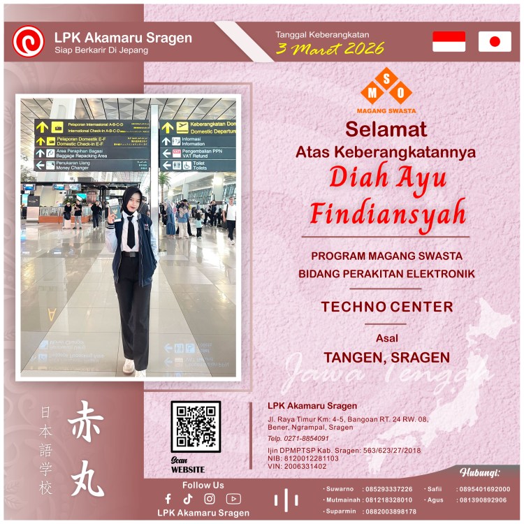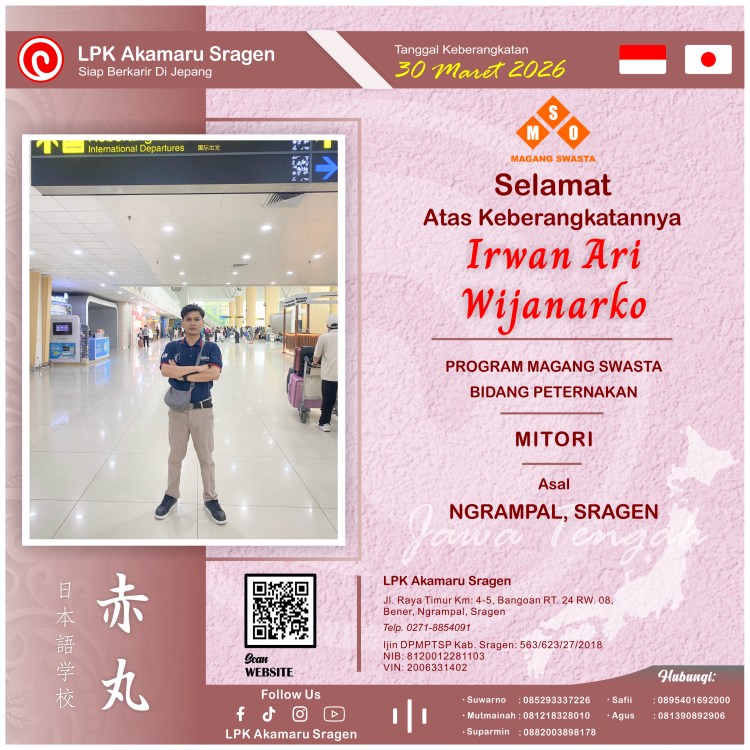 - Mendampingi serta memantau proses dari awal sampai berangkat ke Jepang.
