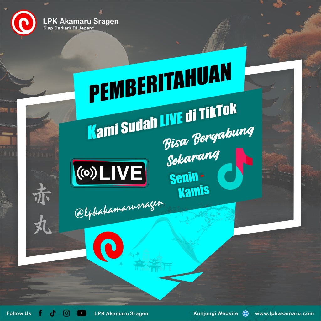 Boleh Belajar Sambil LIVE Ditulis olehakamarusragen15 Februari 2024Diposkan padaTidak Dikategorikan Kami juga sudah LIVE di TikTok setiap hari Senin-Jumat. Boleh bergabung belajar Online. BISA DAFTAR DISINI Terkait